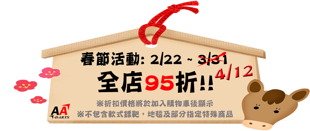 (部分商品不在此優惠範圍內,例如軟式鏢靶,飛鏢地毯)